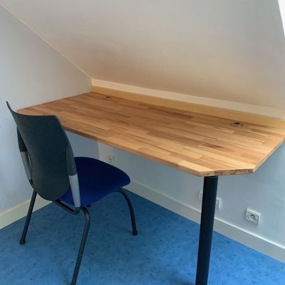 - Commode, chevet, bureau, étagère, chaises, table bistrot, porte-manteau.
